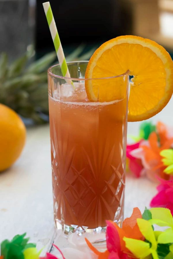 Pour all liquid ingredients into a shaker with ice and shake forty times. Strain into highball filled with ice and garnish with orange slice.